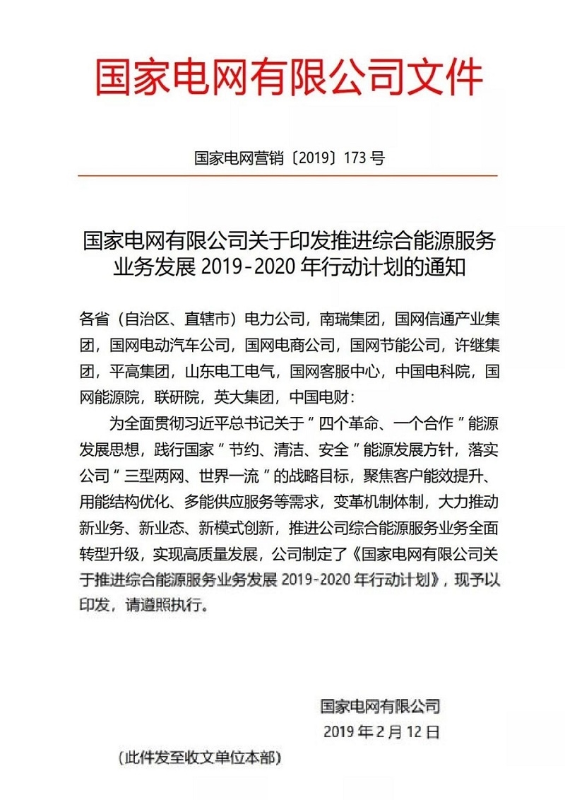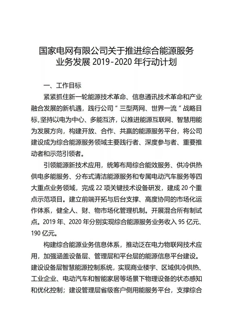 國家電網印發(fā)《推進綜合能源服務業(yè)務發(fā)展2019-2020年行動計劃》
