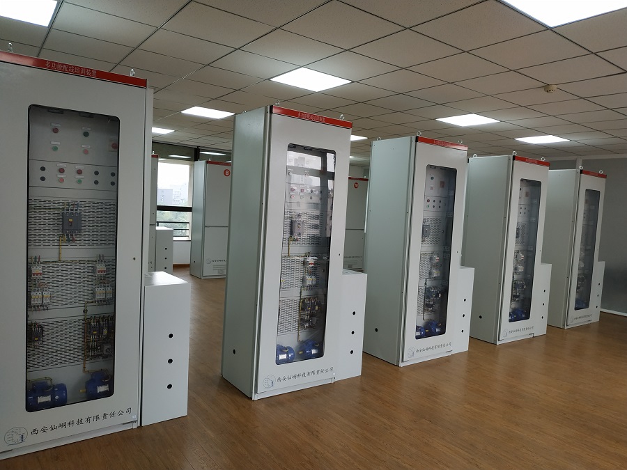 多功能配線裝置采用空屏柜,正面放置鋼制網(wǎng)孔板分為上下兩部分,上面進(jìn)行參數(shù)顯示合閘、分閘及帶電指示,下面進(jìn)行電機(jī)接線培訓(xùn),背面為低壓三相四裝表接電練習(xí),配有10/5電流互感器,接線盒,假表尾等,專門為電力部門維修電工、內(nèi)線安裝工、裝表接電工、用電檢查、通用電工及農(nóng)網(wǎng)配電營(yíng)業(yè)工等專業(yè)人員進(jìn)行技能培訓(xùn)與考核而設(shè)計(jì)。采用實(shí)際安裝配線,實(shí)現(xiàn)低壓用電、電能計(jì)量及電動(dòng)機(jī)控制電路的安裝配線操作,通過(guò)培訓(xùn),使維修電工、內(nèi)線安裝工、裝表接電工、用電檢查、通用電工及農(nóng)網(wǎng)配電營(yíng)業(yè)工等學(xué)員熟悉各類配線規(guī)程,熟練掌握配線工藝及流程,提高實(shí)操水平。