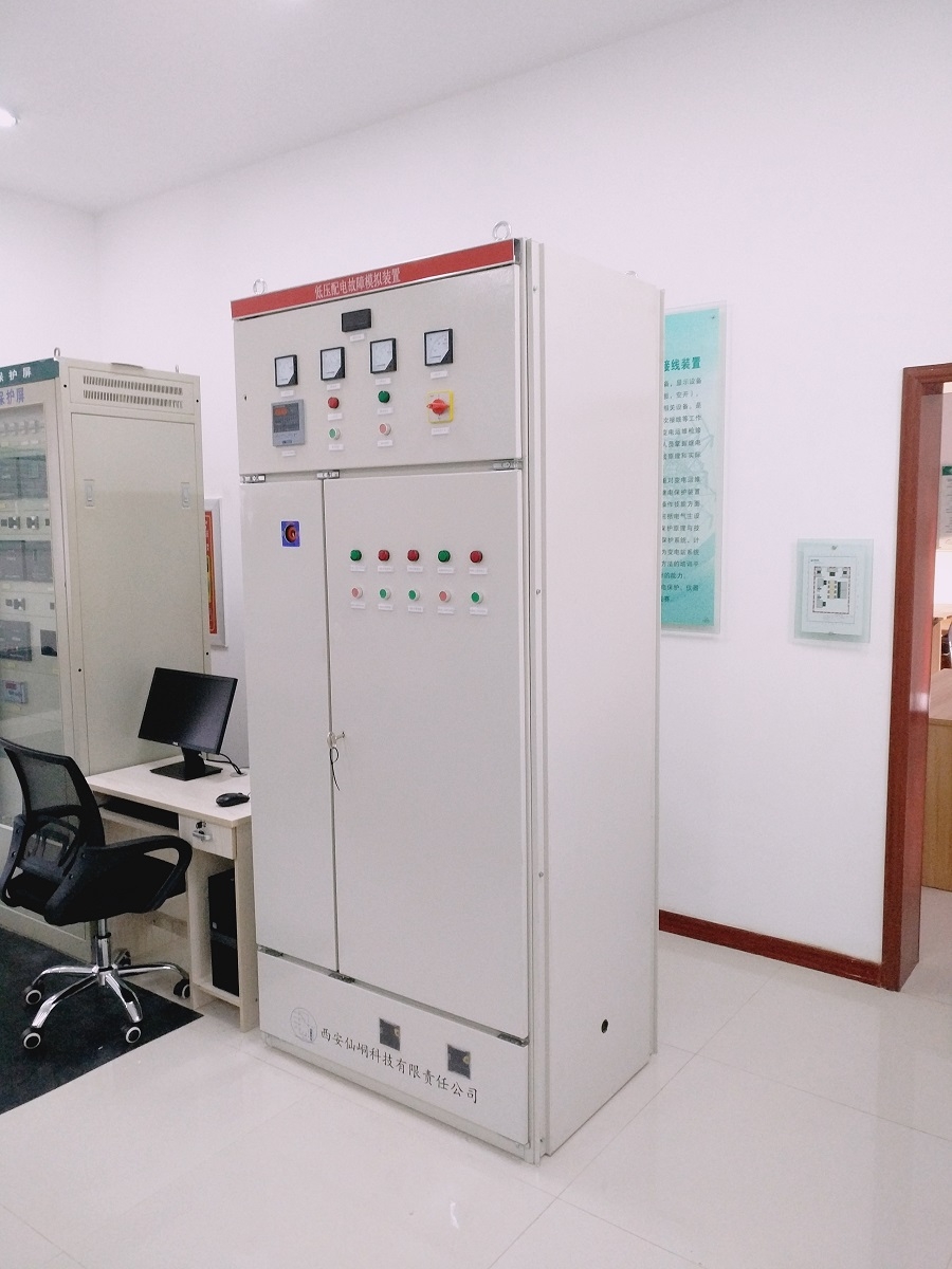 低壓排故排除實(shí)訓(xùn)裝置是西安仙峒科技有限責(zé)任公司研發(fā)用于電力培訓(xùn)學(xué)校設(shè)計(jì)制造的培訓(xùn)設(shè)備,培訓(xùn)對(duì)象為從事電力行業(yè)的學(xué)員和員工。裝置主要針對(duì)低壓故障排除練習(xí)培訓(xùn),柜體的前后都可以作為操作面,兩側(cè)用側(cè)封板,柜體裝有刀閘,塑殼斷路器、有功表、無(wú)功表、單相表、電機(jī)、接觸器、電容、熱繼電器等常見(jiàn)電氣元器件。該裝置具有對(duì)三級(jí)漏電保護(hù)回路,電容器補(bǔ)償回路,儀表指示測(cè)量回路,以及電動(dòng)機(jī)控制回路(星型三角型控制回路,正反轉(zhuǎn)控制回路)等常見(jiàn)故障進(jìn)行分析、判斷、處理培訓(xùn)的功能。